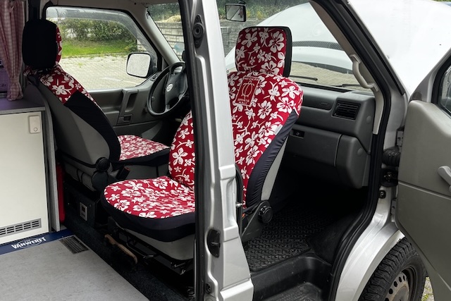 Und man bekommt auch eine Sitzbank in der Zweiten Reihe hinter Fahrer/ Beifahrer nachgerüstet, wenn es doch mal mehr Sitze in Zukunft braucht. Wichtig ist einfach… man ey, so eine Doppelbeifahrerbank nervt. Grad bei schlechtem Wetter, den Beifahrersitz mal drehen können, ist der Hit – da hat man plötzlich so viel mehr Platz im Auto. Der Innenraum ist ja nicht sonderlich gross und schon hat man zwei Orte zum chillen und muss nicht/ man will auch nicht immer zu zweit auf m Bett chillen oder eben auch allein, immer am selben Ort sitzen müssen.